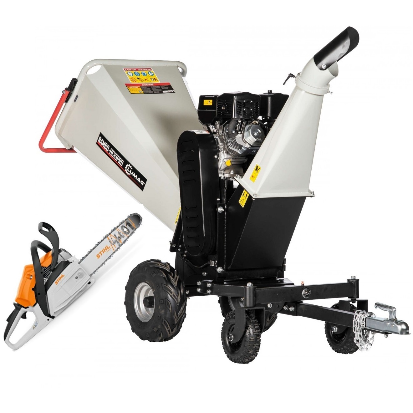 Rębak / Rozdrabniacz LUMAG RAMBO-HC15PRO 15KM z pilarką spalinową STIHL MS172 1,9KM. W zestawie taniej.